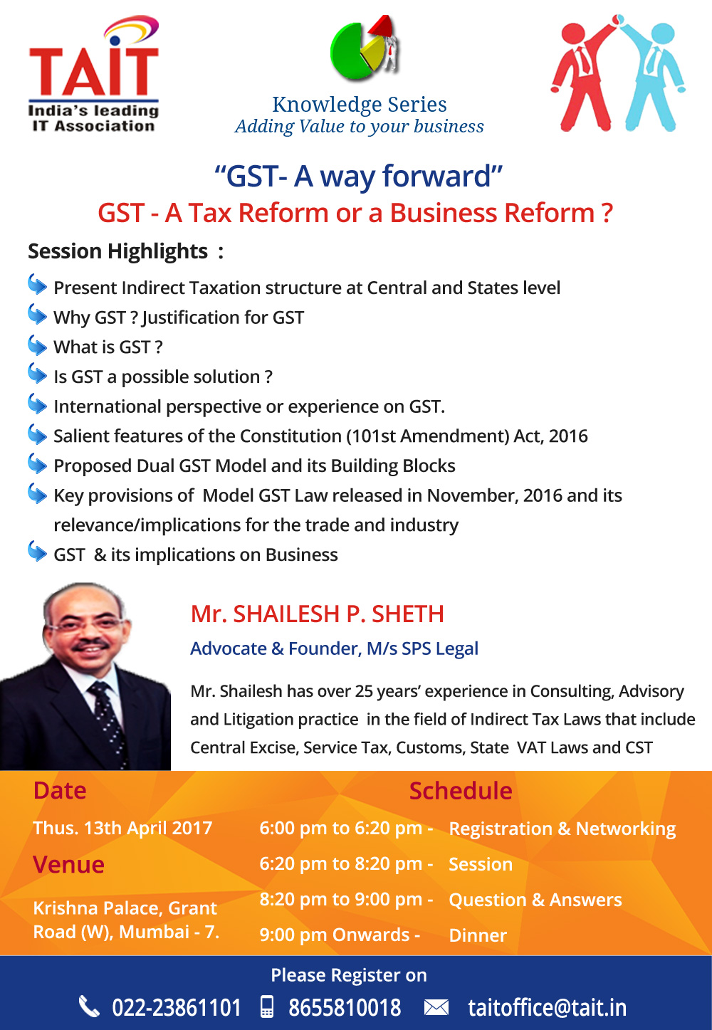 TAIT Knowledge Series on 'GST' by Advocate Mr. Shailesh Sheth.